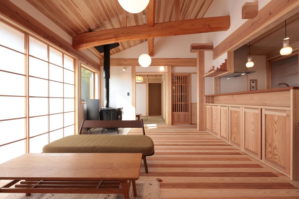 丸喜製材が建てる住まいは、自然素材をふんだんに使用した、木のぬくもりと風合いを感じる体と心に優しい住まいです。熟練した職人の手による木組みの伝統的な技術に加え、最新技術からも良いものは積極的に取り入れた、伝統と革新を兼ね備えた「木の家」を提供致します。